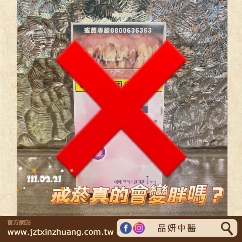 菸含有的尼古丁會讓人精神亢奮,代謝率高,一旦戒菸,基礎代謝率降低就容昜發胖,而且戒菸後味覺變敏感,食慾跟著上漲,通常會吃得比較多,這時候如果沒有警覺到或是沒有讓自己轉移注意力,體重就會上升。