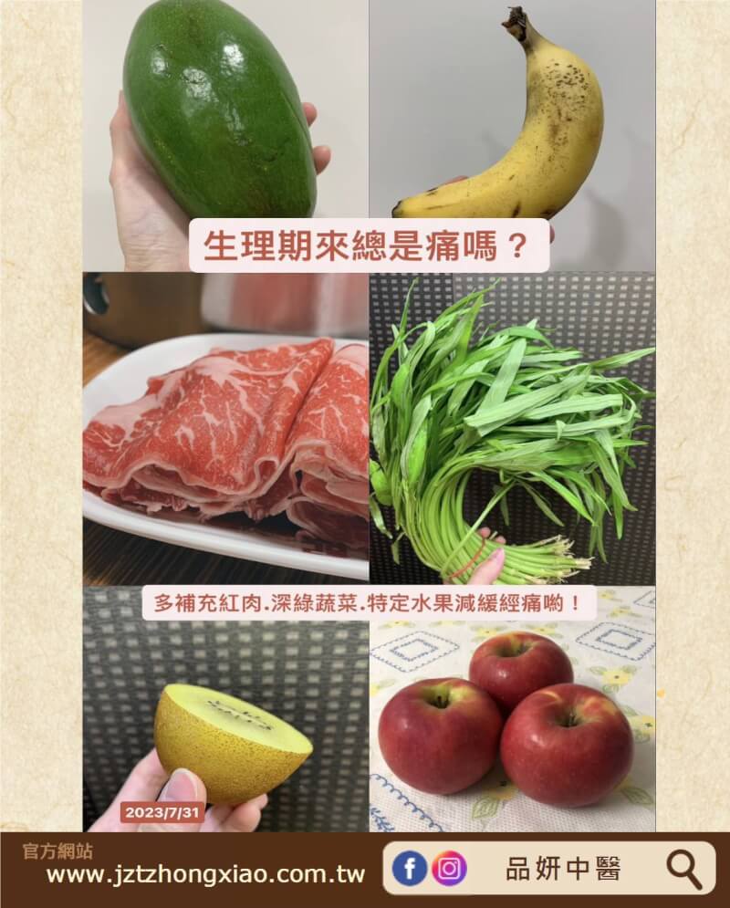 蘋果:內含豐富的有機酸.纖維跟維生素B6,可以幫助腸胃蠕動,使經血順暢排淨