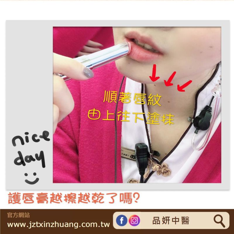 頻繁左右塗抹會造成累積的水分在護唇膏完全掉落時蒸發導致脫皮,唇部的皮膚比較脆弱,由上往下縱向塗抹才是正確,次數建議五次才不會讓唇有不必要的摩擦